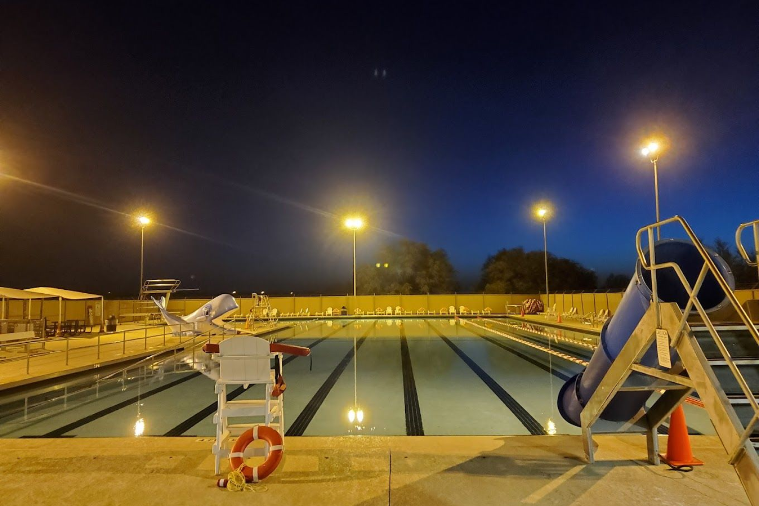 Outdoor 8 lane 50 meter pool with an attached divewell
